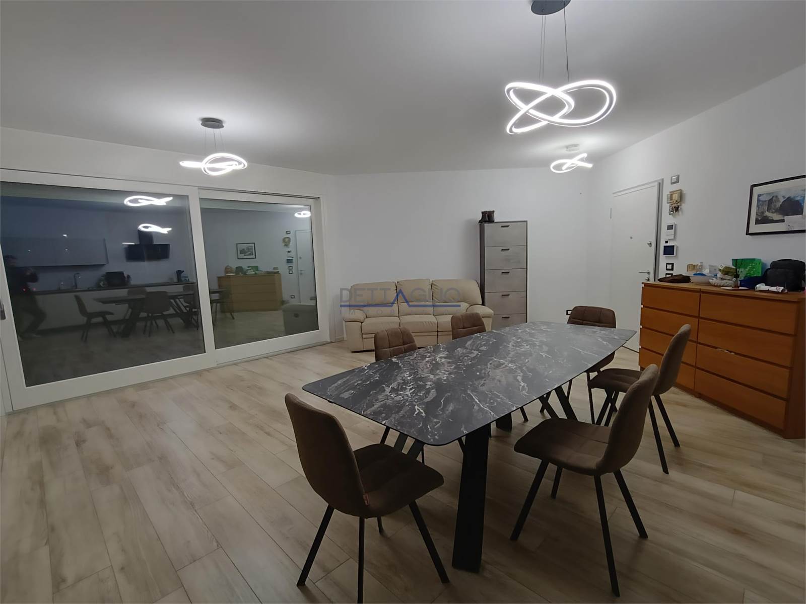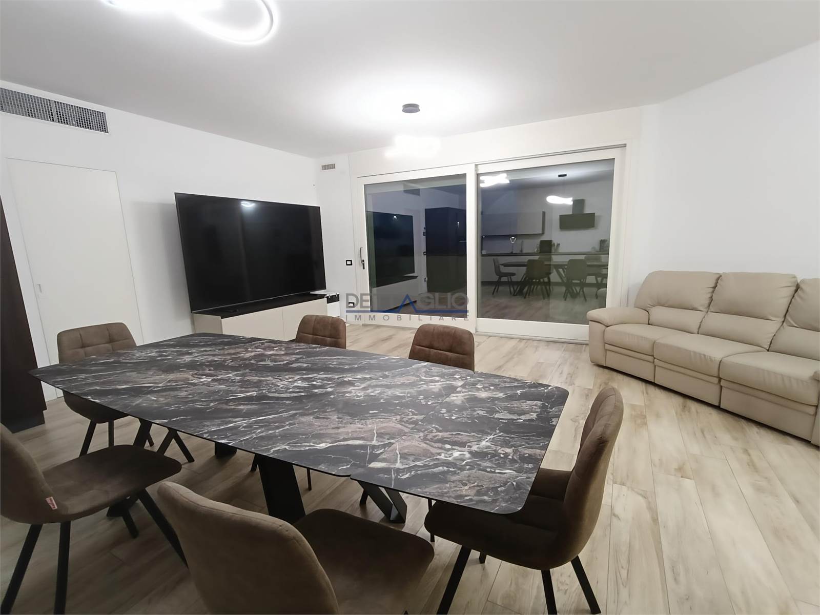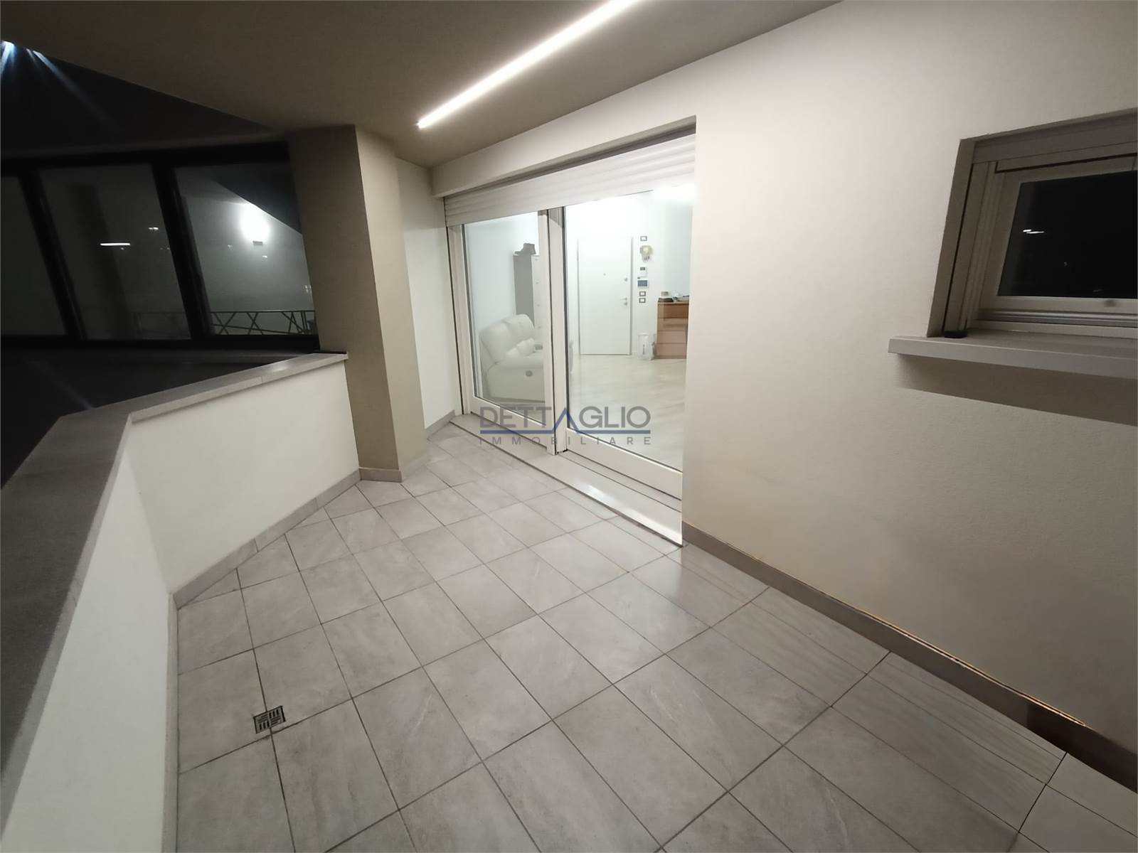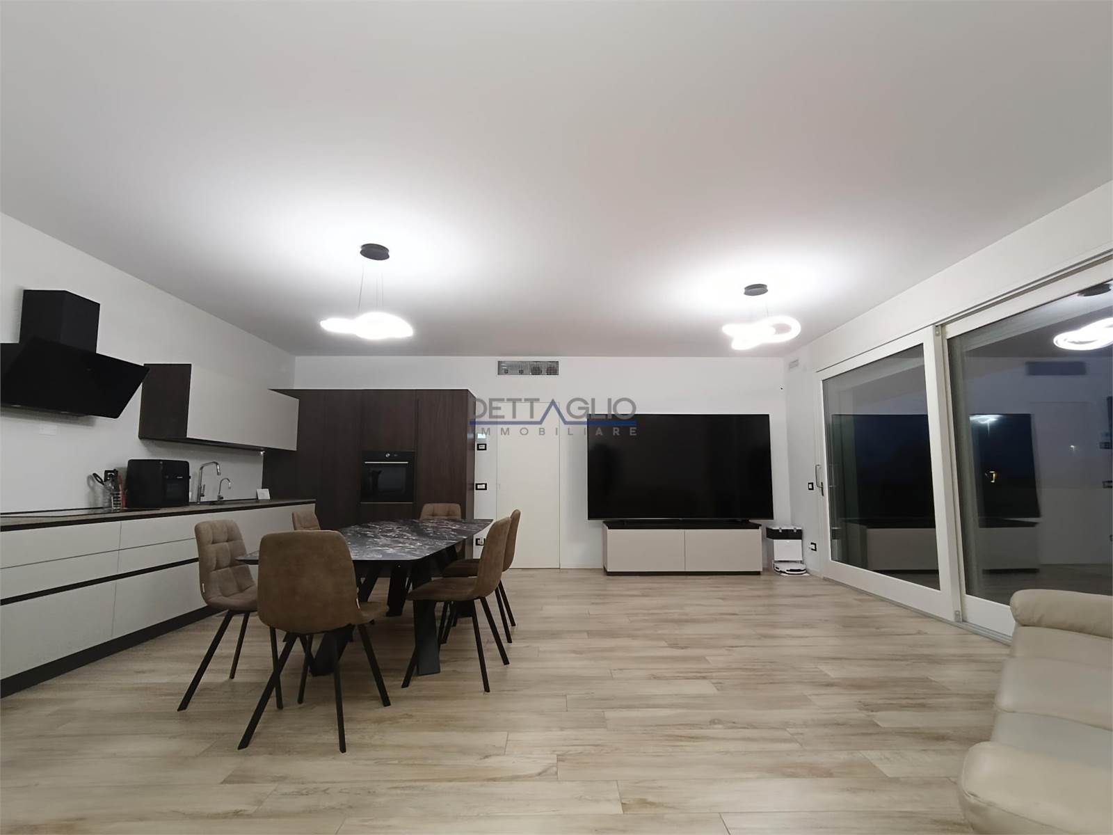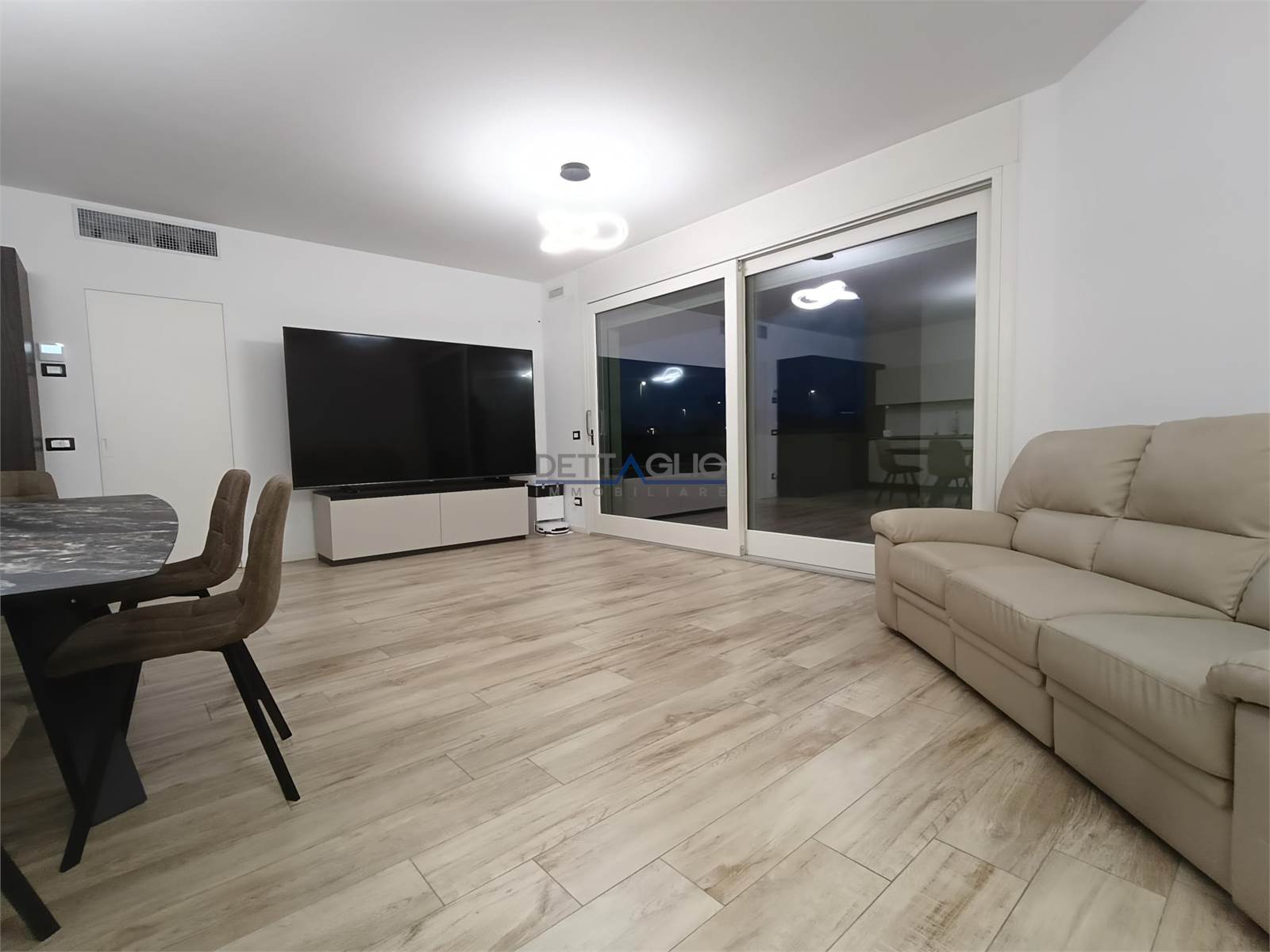 In residence di recentissima costruzione, ottima posizione centrale, appartamento al piano primo composto da ampia zona giorno open space di oltre 40 mq, terrazzo abitabile panoramico da 25 mq, disimpegno, 2 camere da letto e 2 bagni. Al piano terra ampio garage singolo (comunicante direttamente con il vano scale) e posto auto esclusivo.