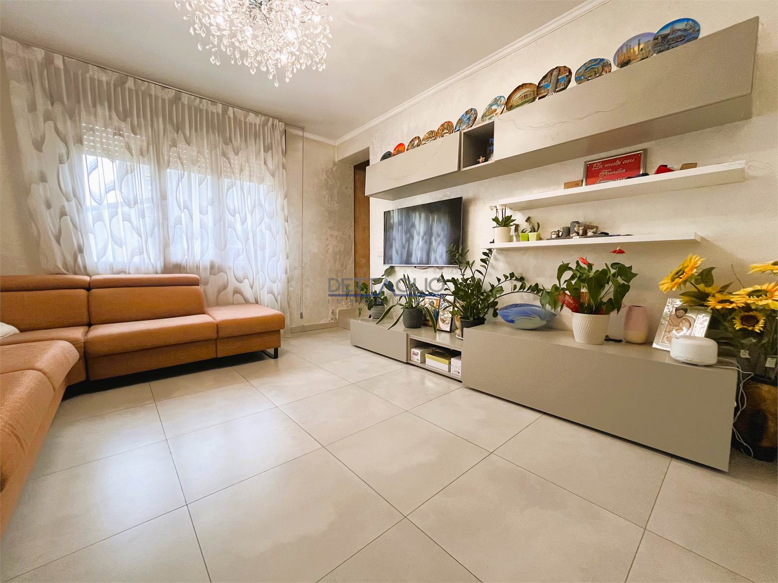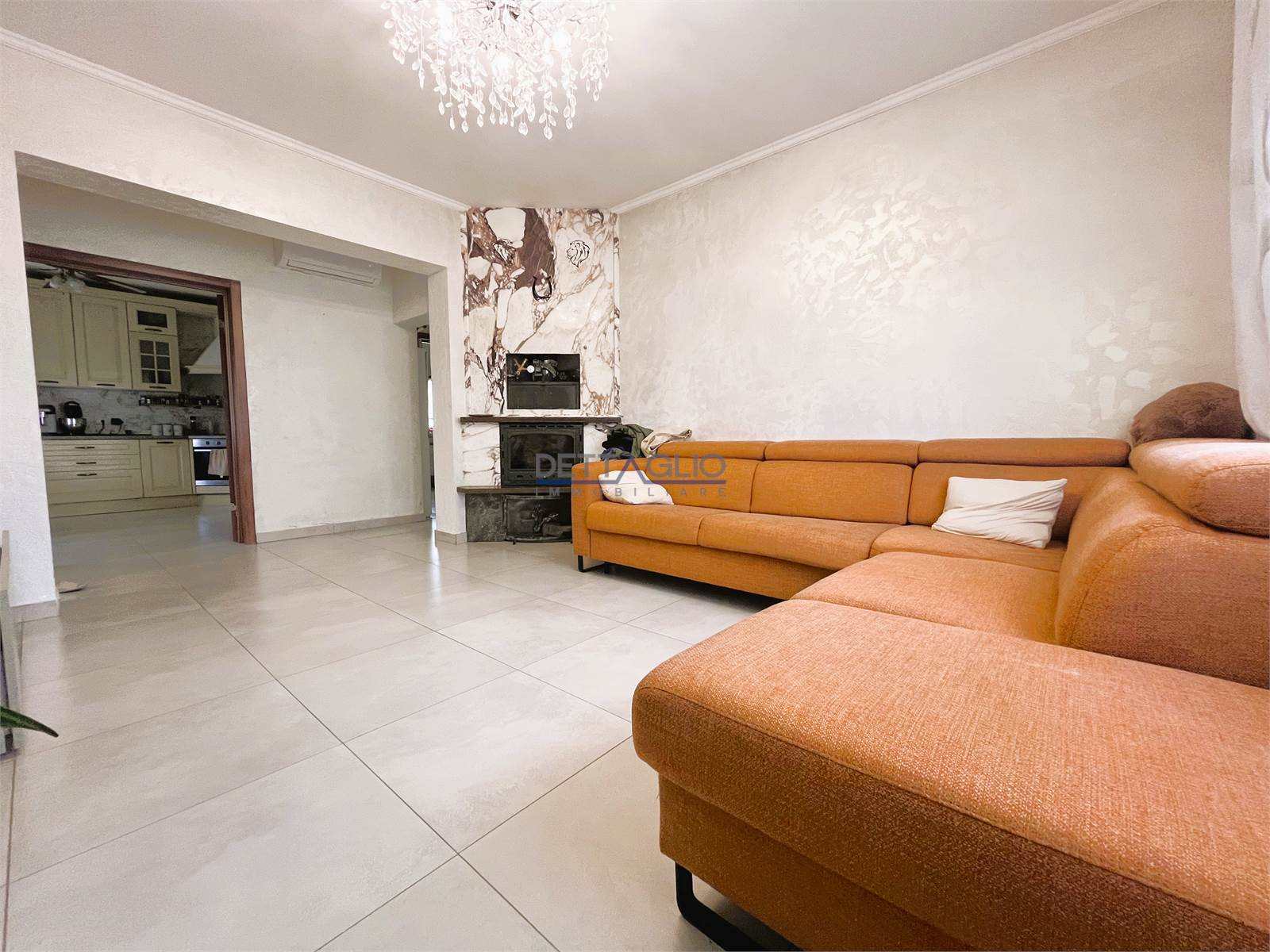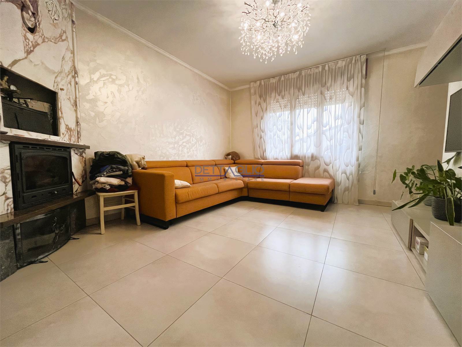 ingresso, soggiorno con termocamino, cucina abitabile, camera matrimoniale, ampio bagno con box doccia, lavanderia/ripostiglio.