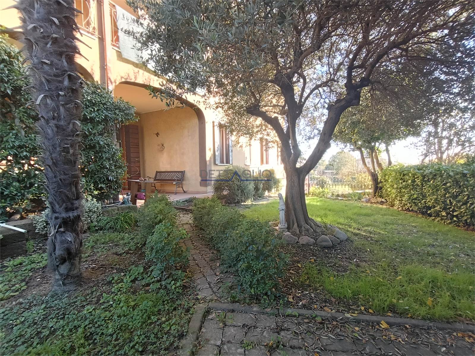 Completano il tutto un garage con annessi magazzini, un posto auto coperto e un ampio scoperto parzialmente adibito a giardino e parzialmente adibito a posti auto.