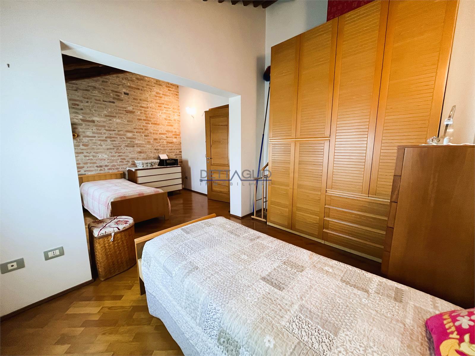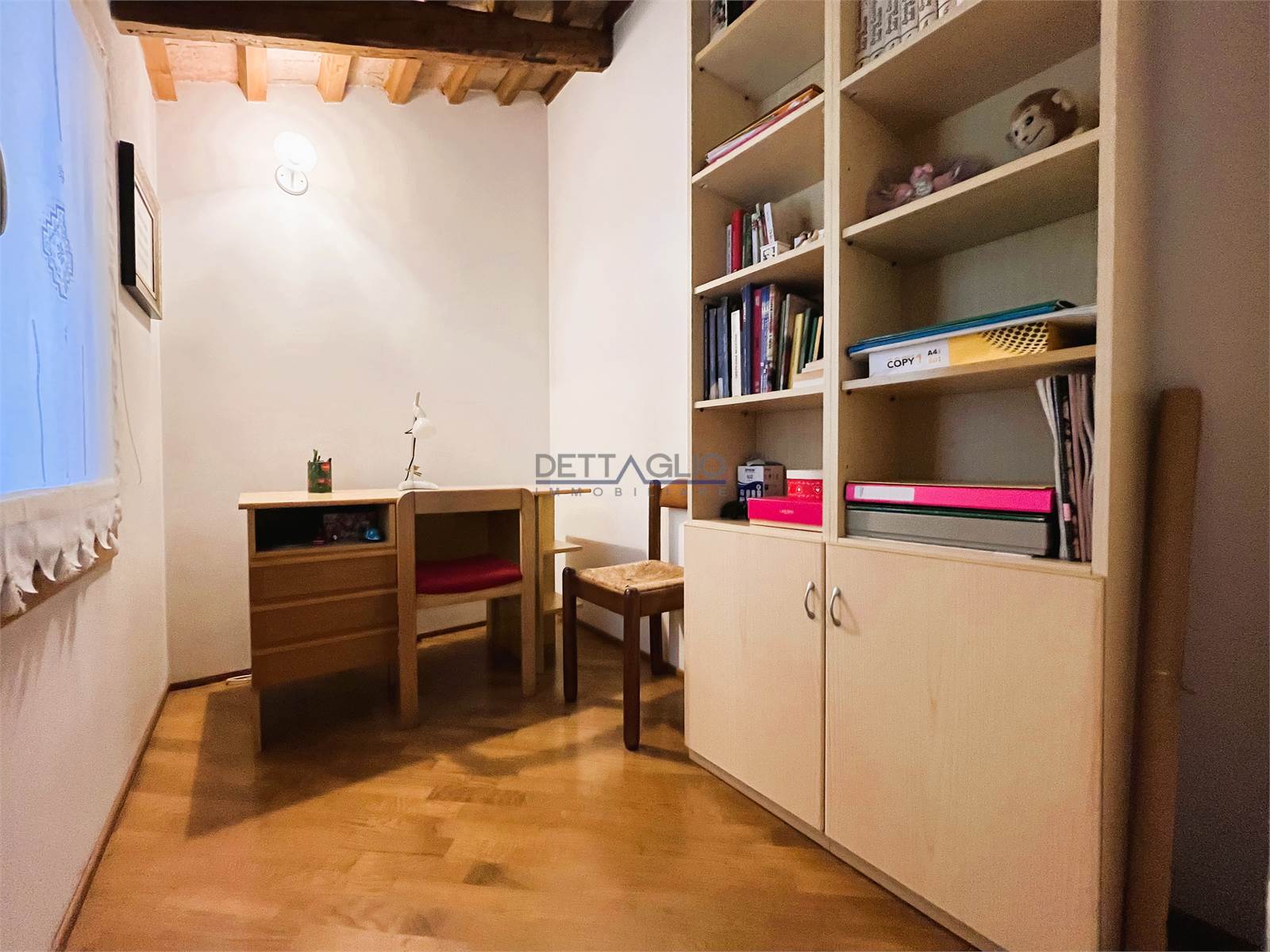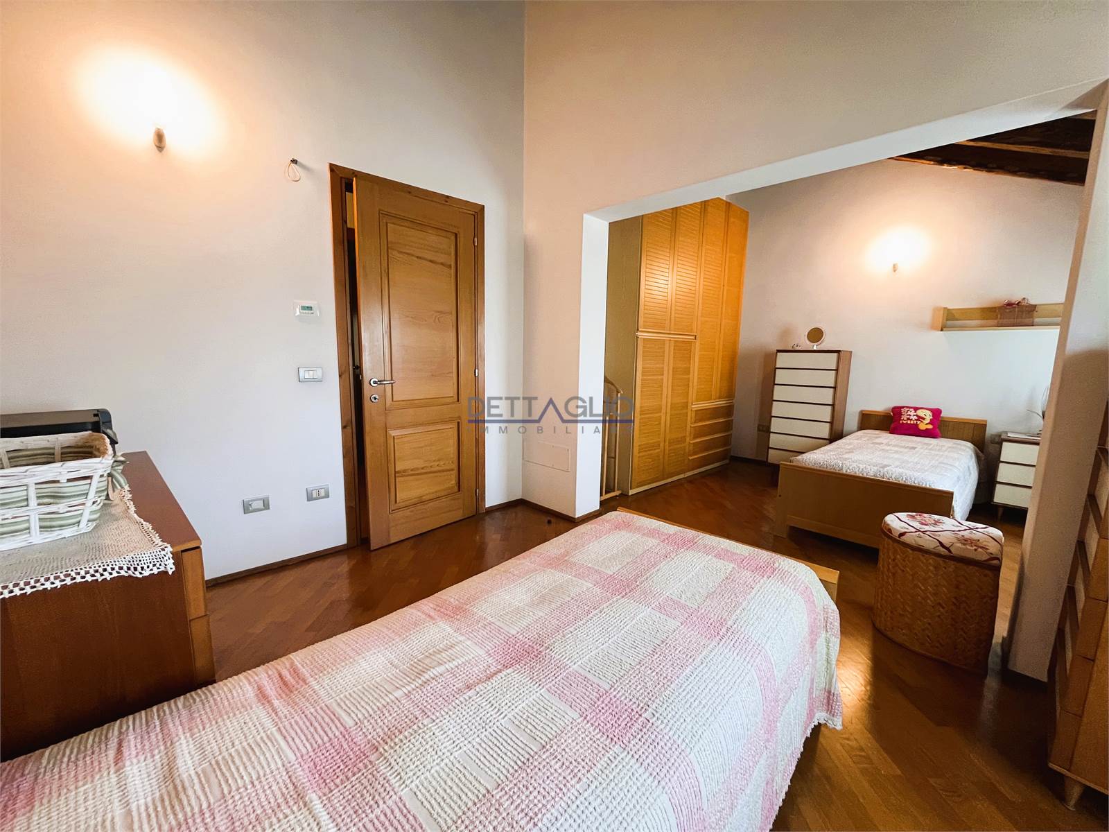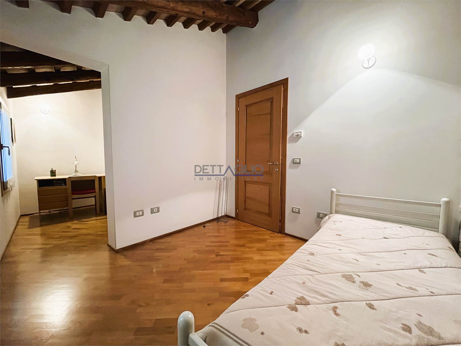 camera matrimoniale, ripostiglio adibito a cabina armadio, camera doppia con possibilità di ricavare una cabina armadio, camera singola con studio, e bagno con box doccia.