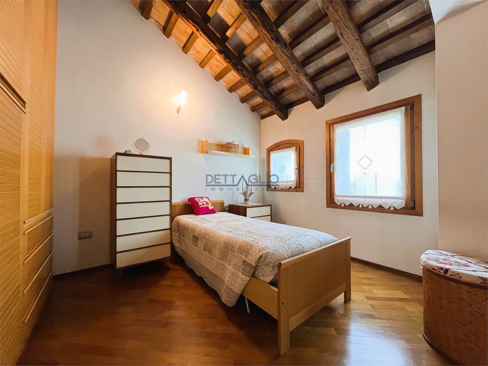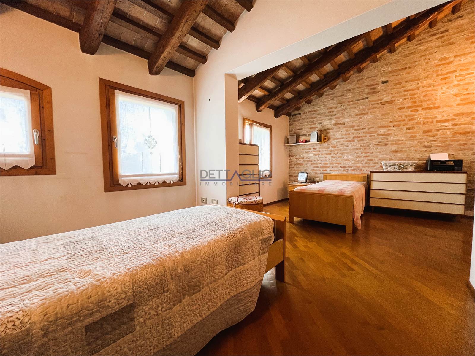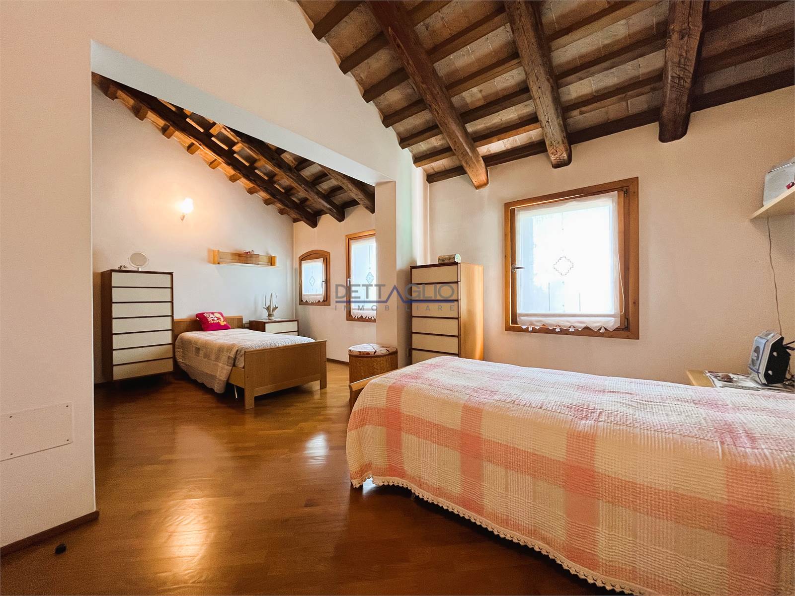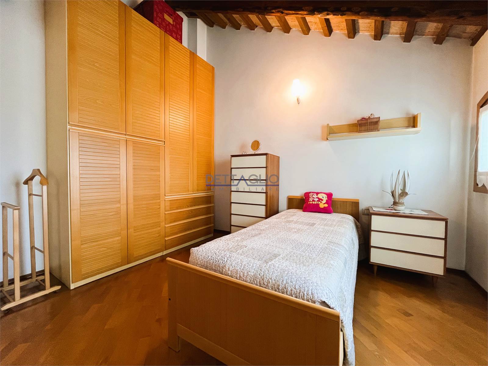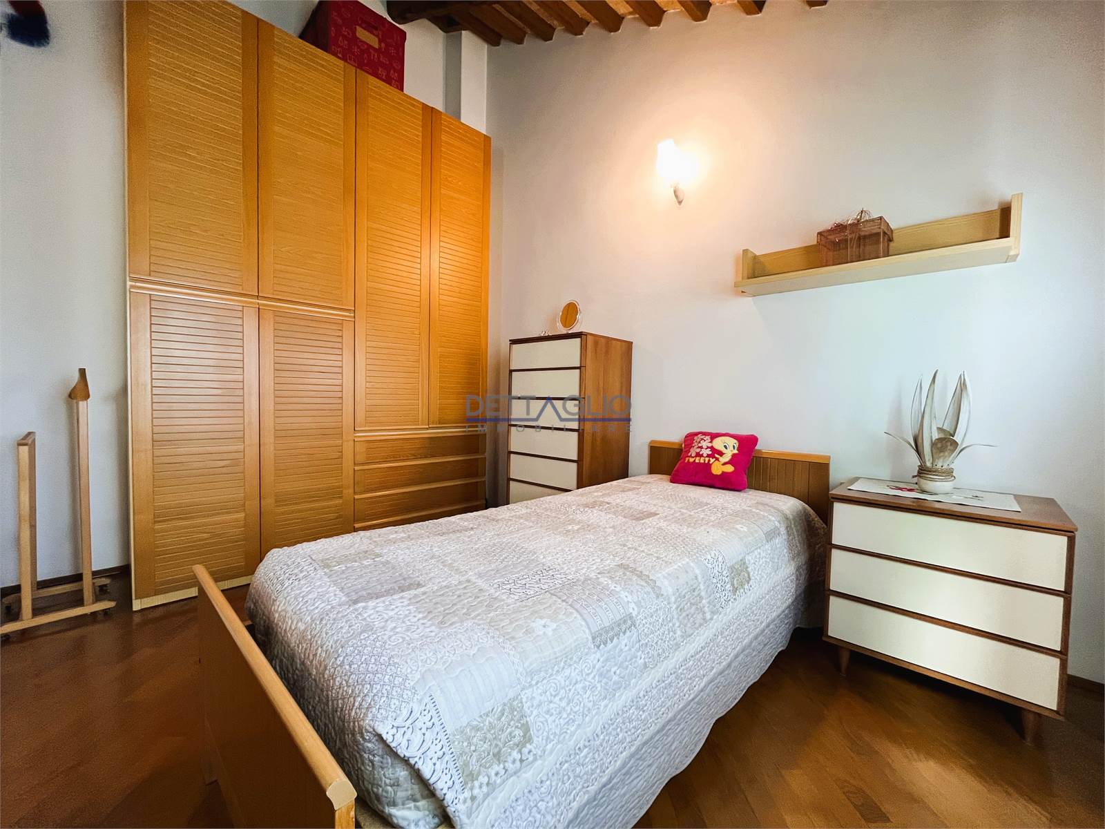 camera matrimoniale, ripostiglio adibito a cabina armadio, camera doppia con possibilità di ricavare una cabina armadio, camera singola con studio, e bagno con box doccia.