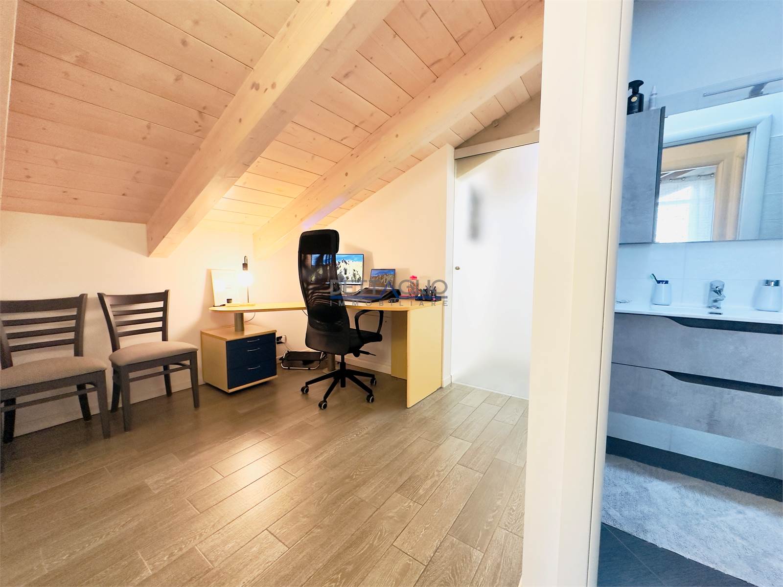 Spese condominiali molto basse, si vende arredato di cucina, arredo bagni, armadio della cameretta, cabina armadio e soppalco del garage.