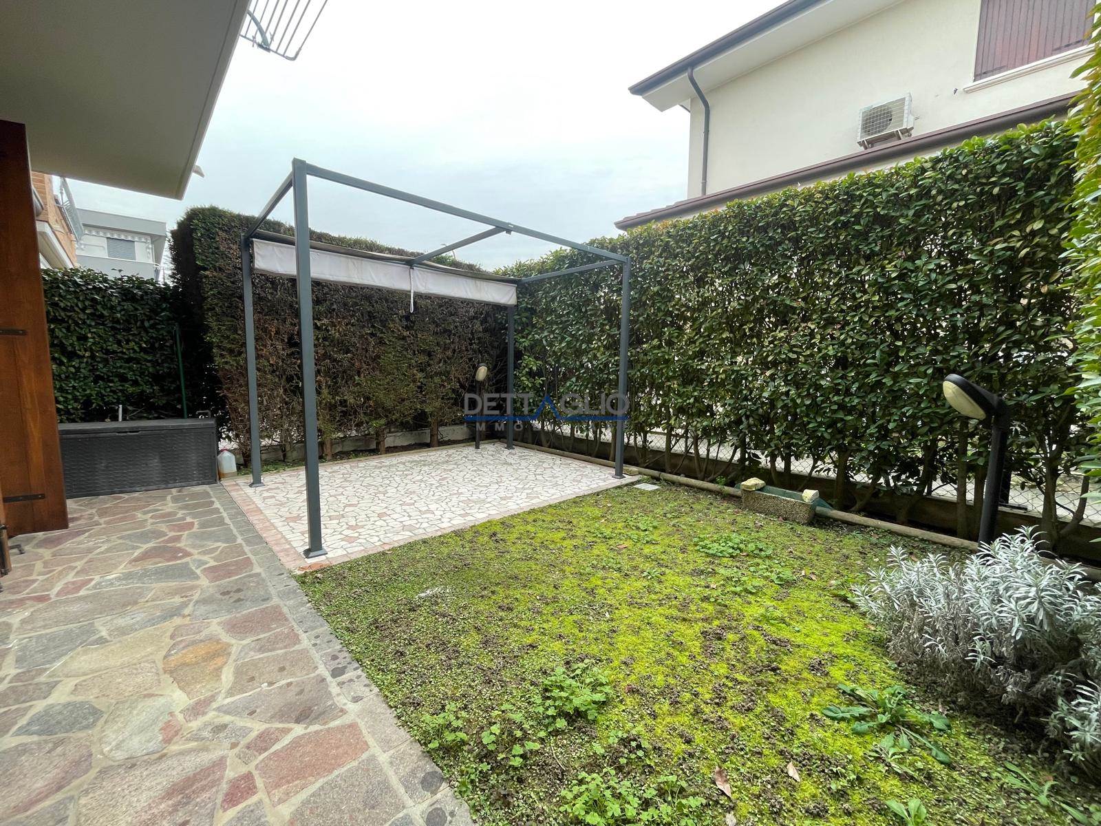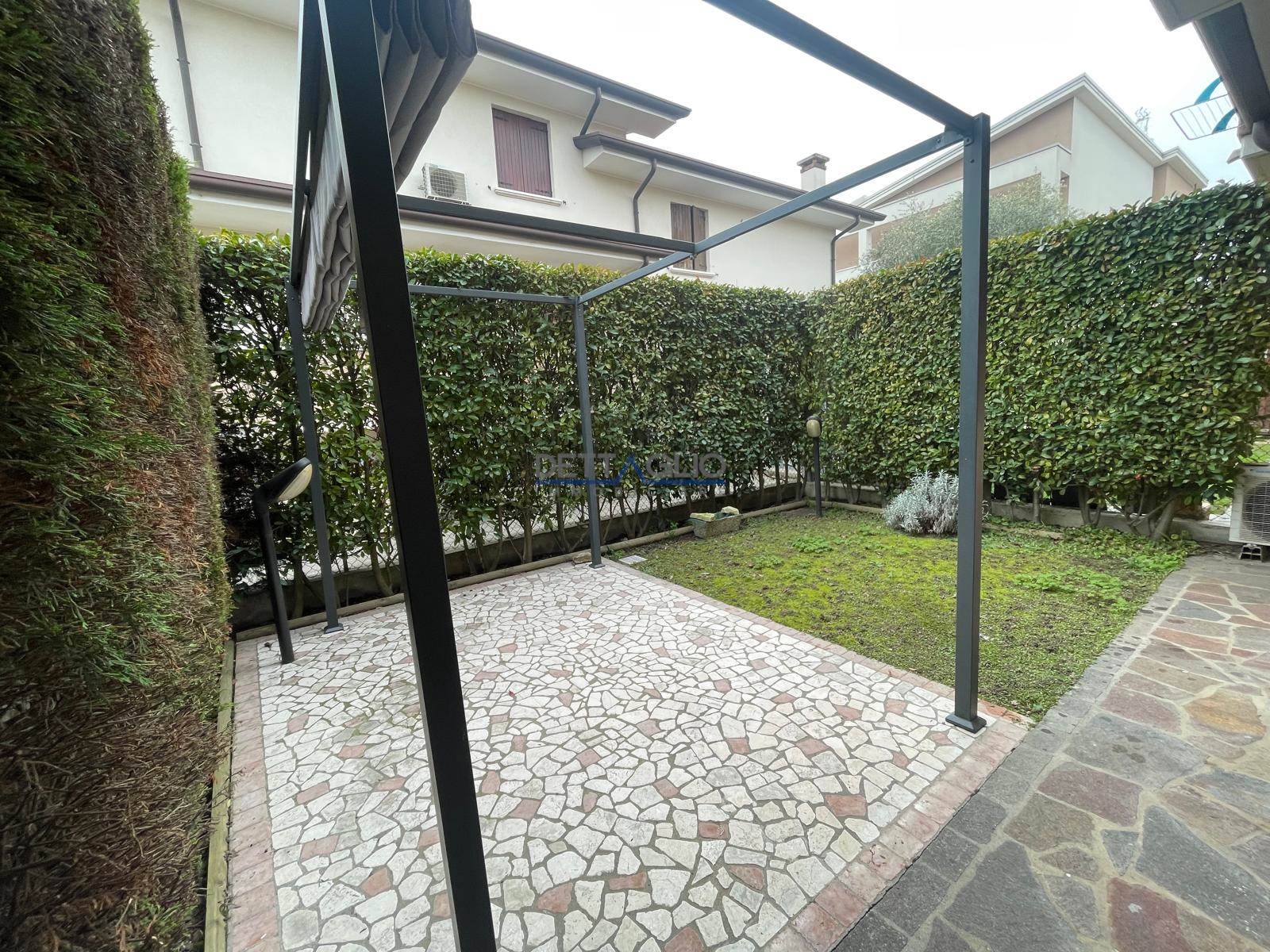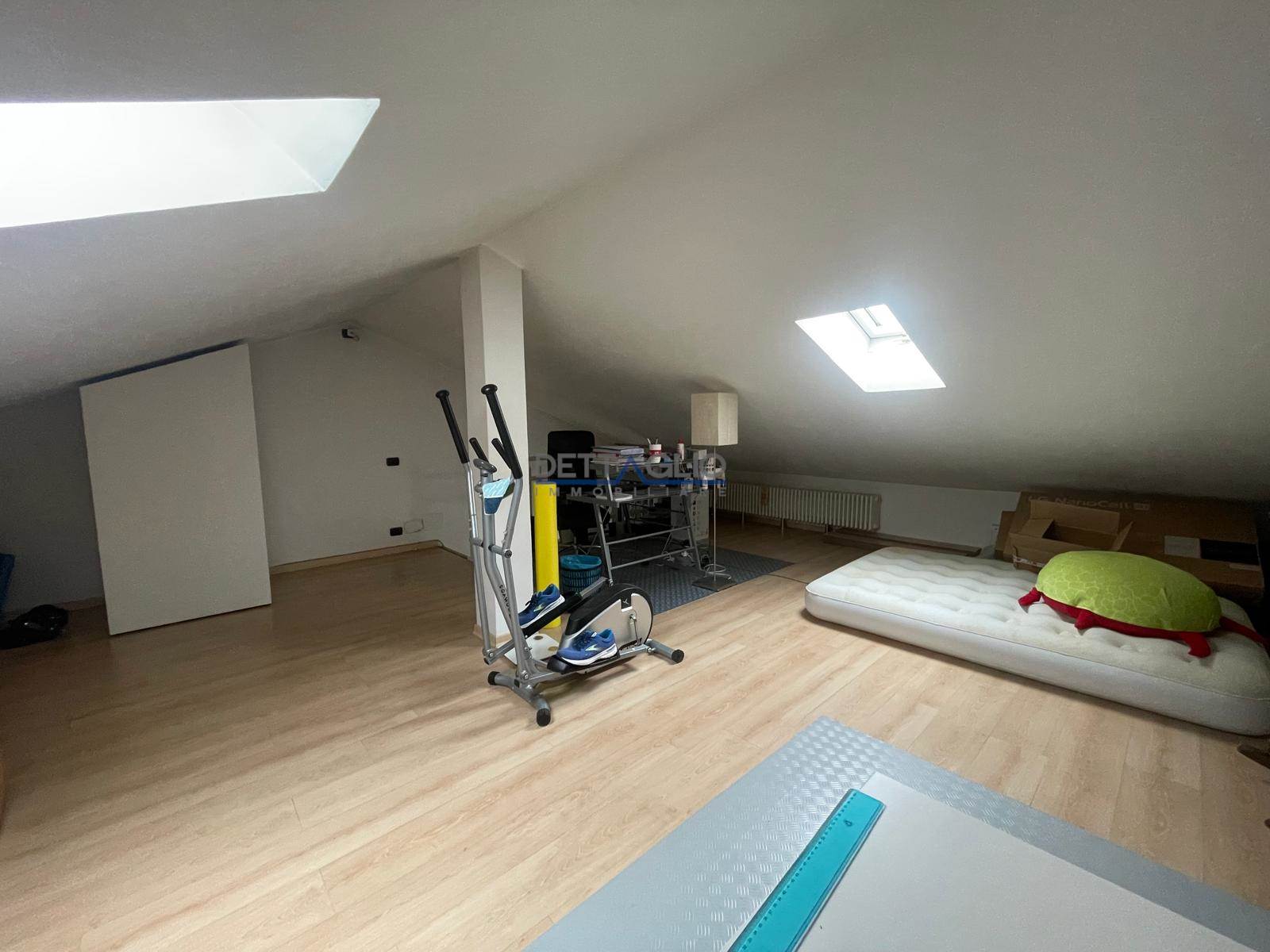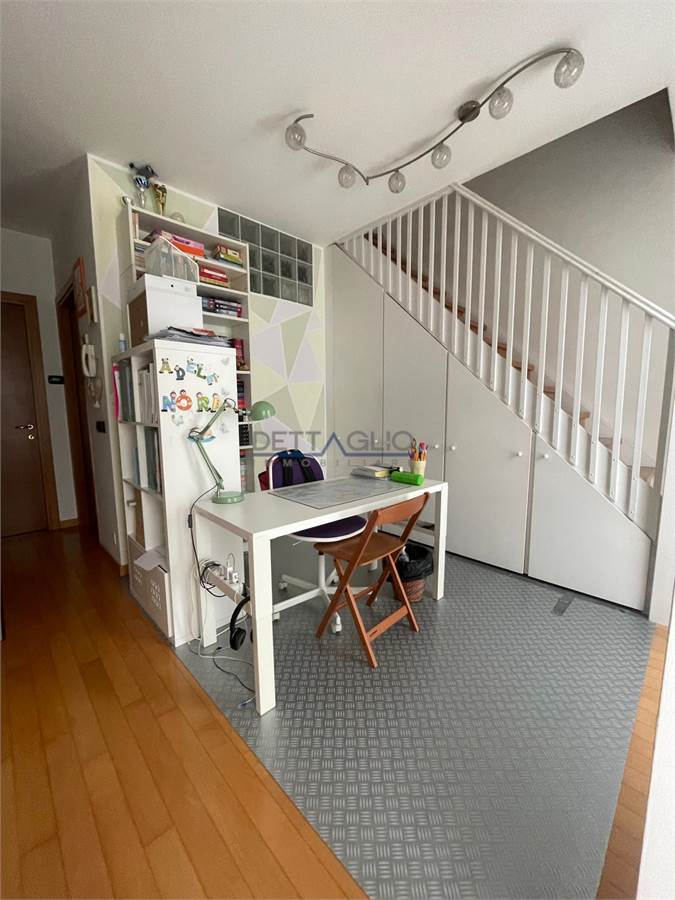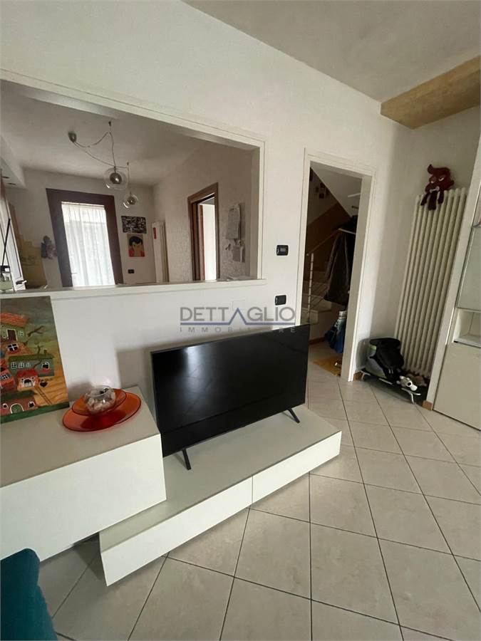 Porzione centrale di trivilla di recente costruzione strutturata su 3 livelli e così composta: al piano terra soggiorno, cucina, bagno con doccia, ripostiglio sottoscala; al piano primo camera matrimoniale, cabina armadio, camera singola, bagno con vasca, ripostiglio a muro, disbrigo attrezzato a studio, oltre a 2 terrazze; al piano secondo ampia mansarda open space. Completano il tutto lo scoperto privato fronte / retro, un garage singolo ed un posto auto esterno.