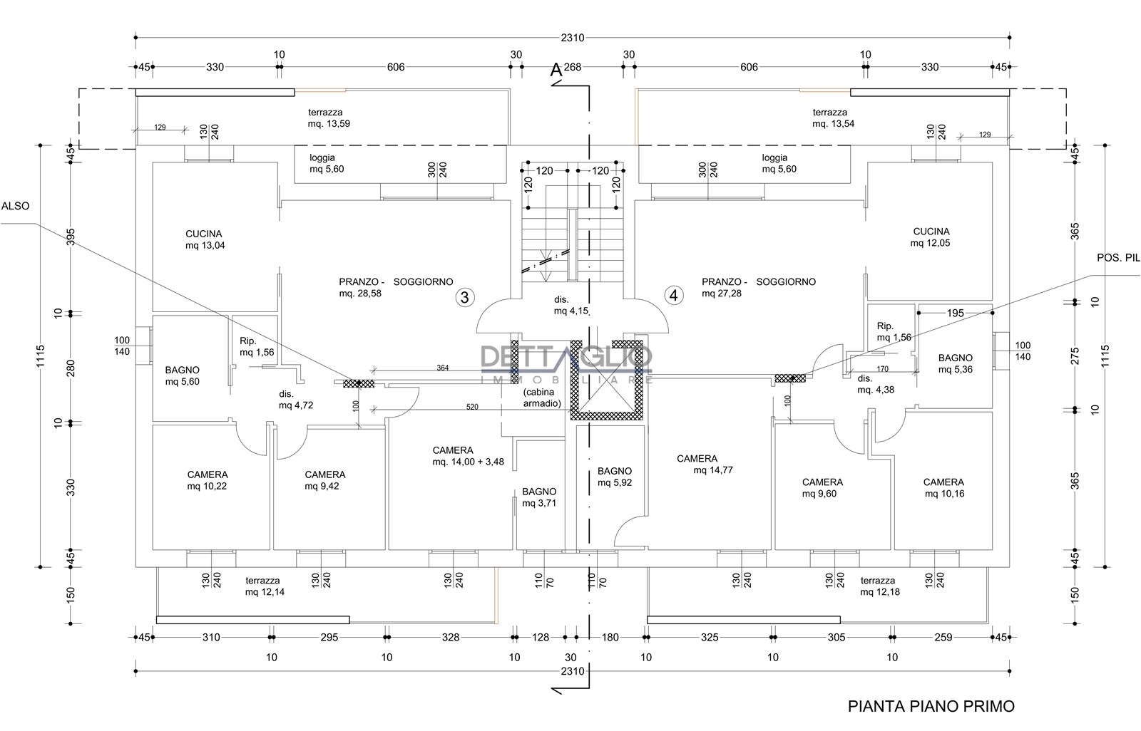 App. 4 - tre camere, due bagni, piano primo con terrazza - euro 467.000