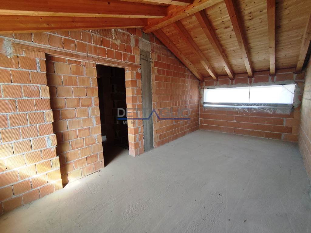 L'abitazione si compone al piano terra da grande soggiorno / cottura travato a vista di quasi 50 mq, bagno, ripostiglio e garage; al piano primo ben 4 camere da letto (di cui 2 matrimoniali), bagno e 2 terrazze.