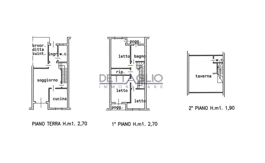 L'immobile è composto al piano terra da ingresso, ampia zona giorno, cucina abitabile, ripostiglio sottoscala; al piano primo troviamo due ampie camere matrimoniali servite da poggiolo coperto, una camera singola, una pratica stanza ad uso ripostiglio; salendo al piano sottotetto troviamo una graziosa mansarda con ulteriori vani ripostiglio sulla parte più bassa del tetto.