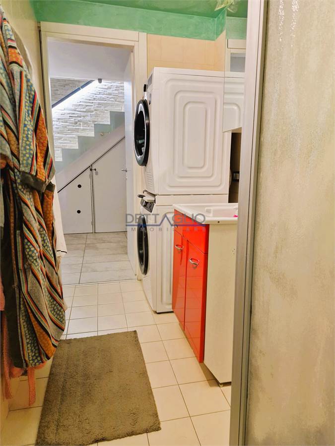 taverna adibita a soggiorno, bagno/lavanderia, ripostiglio e garage con l'accesso diretto all'abitazione.