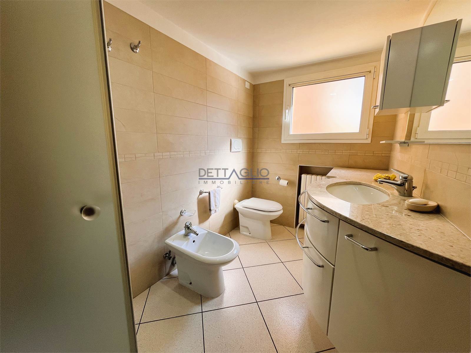 3 camere di cui 2 matrimoniali da 20mq ciascuna, 1 doppia e bagno finestrato con vasca.
