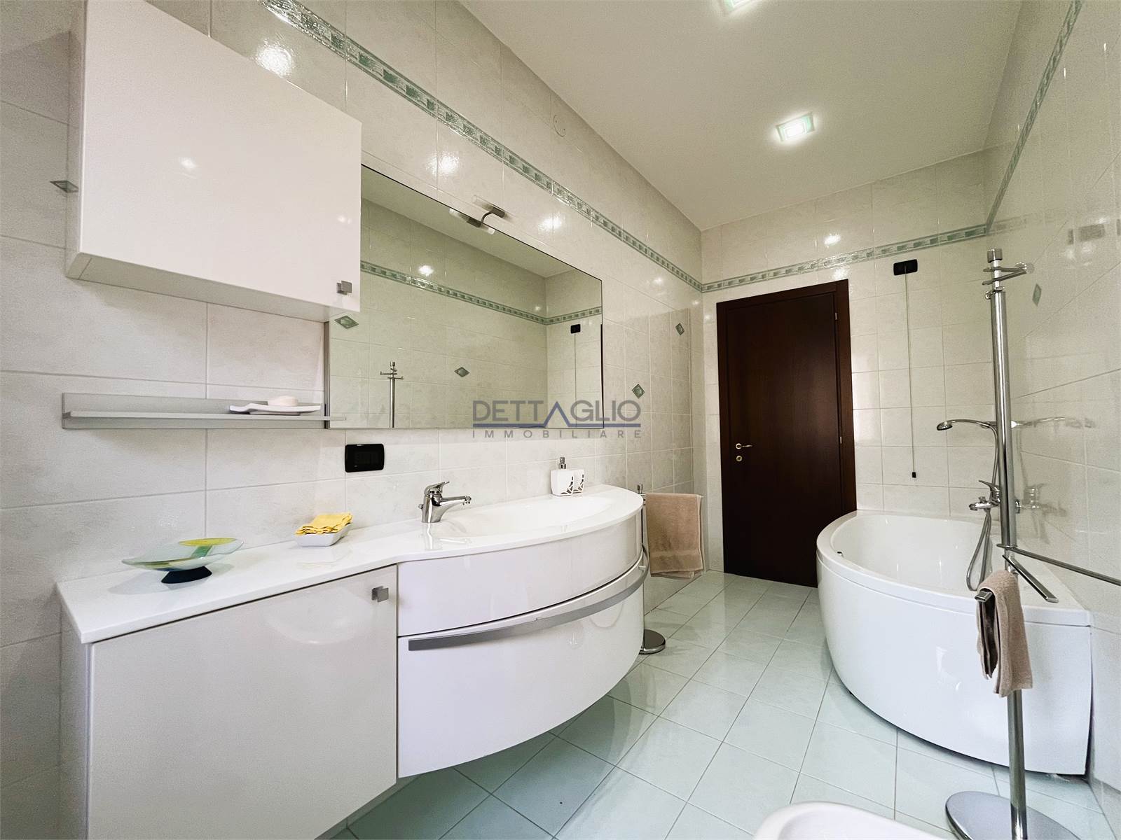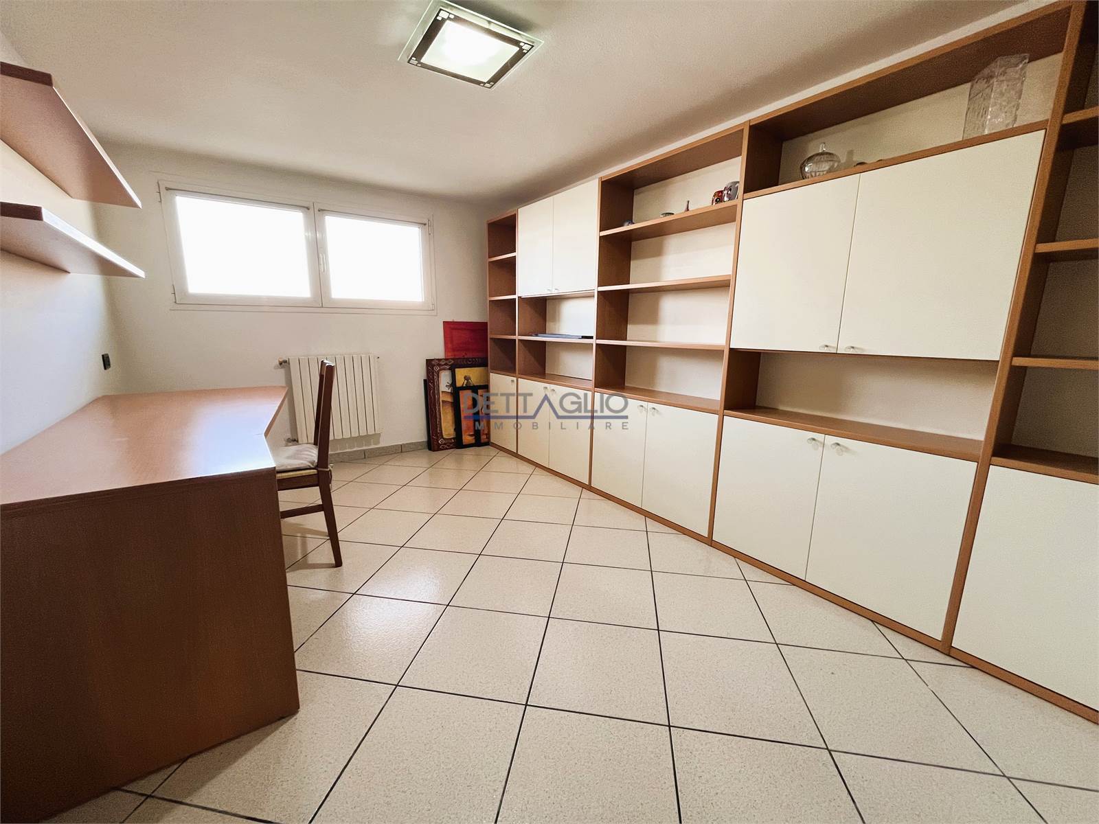 taverna con uscita diretta al giardino, bagno finestrato con box doccia, studio, ripostiglio e lavanderia.