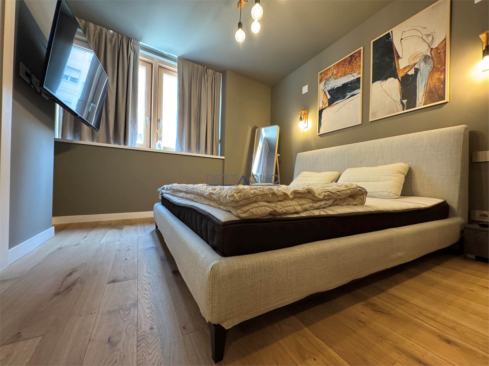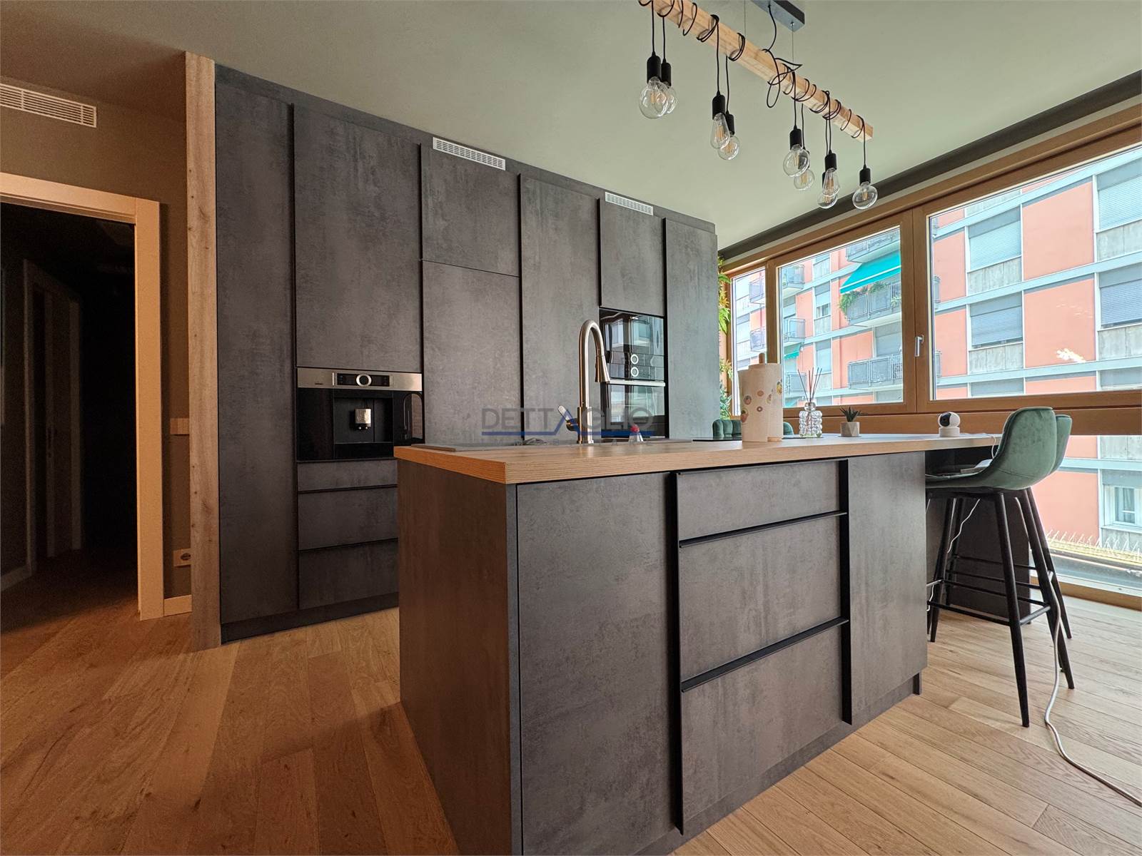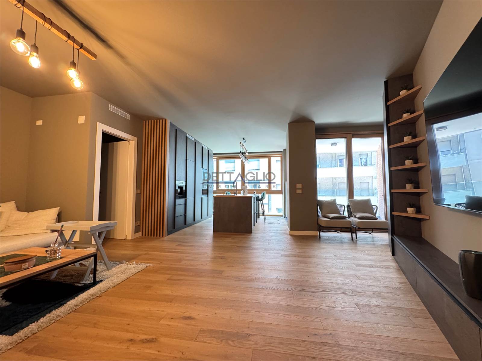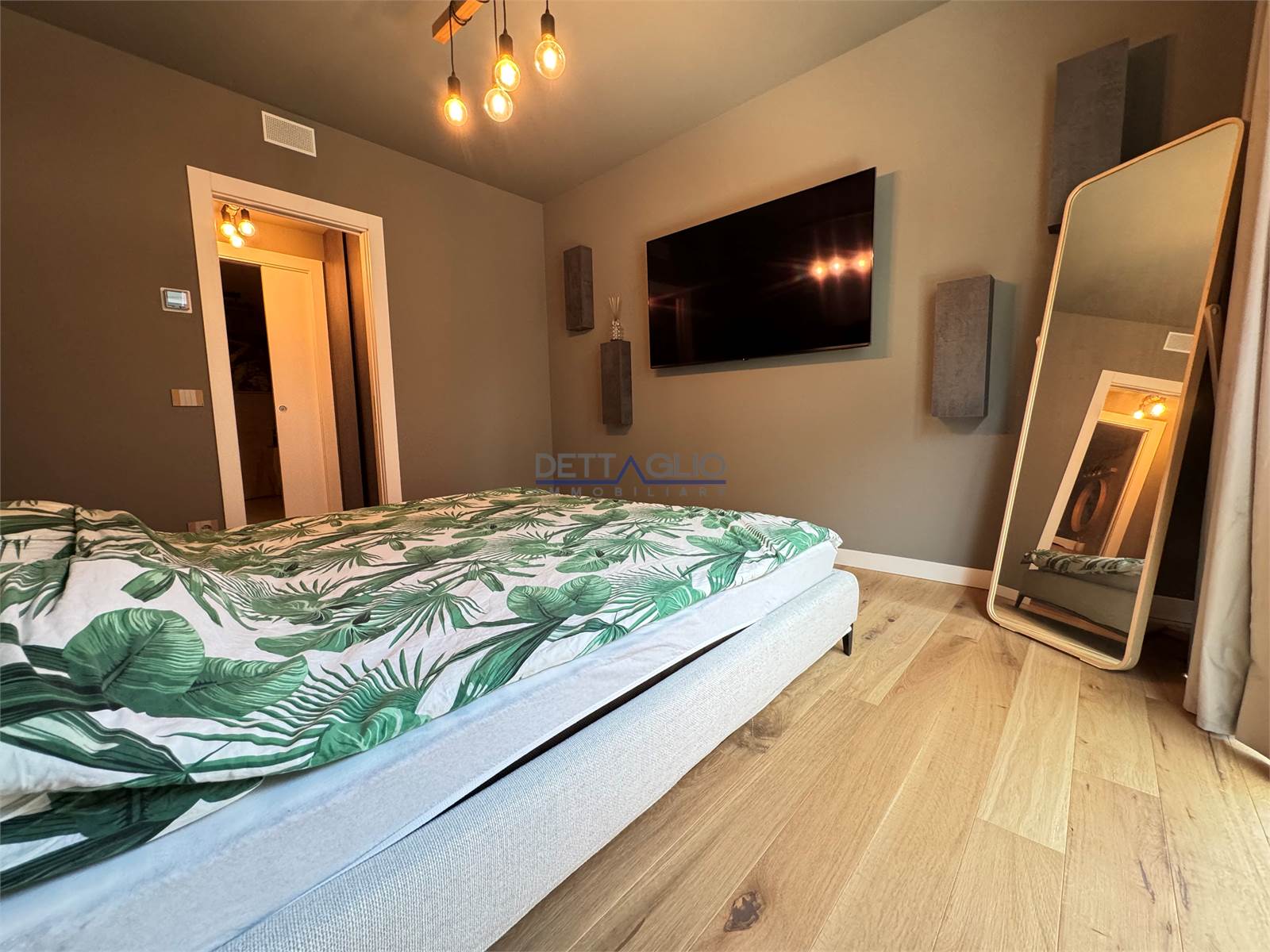 L'appartamento, che si contraddistingue per lo stile moderno ed elegante, è composto da un ingresso, un'ampia zona living con cucina a vista ed accesso al terrazzo, 2 camere matrimoniali e 2 bagni.