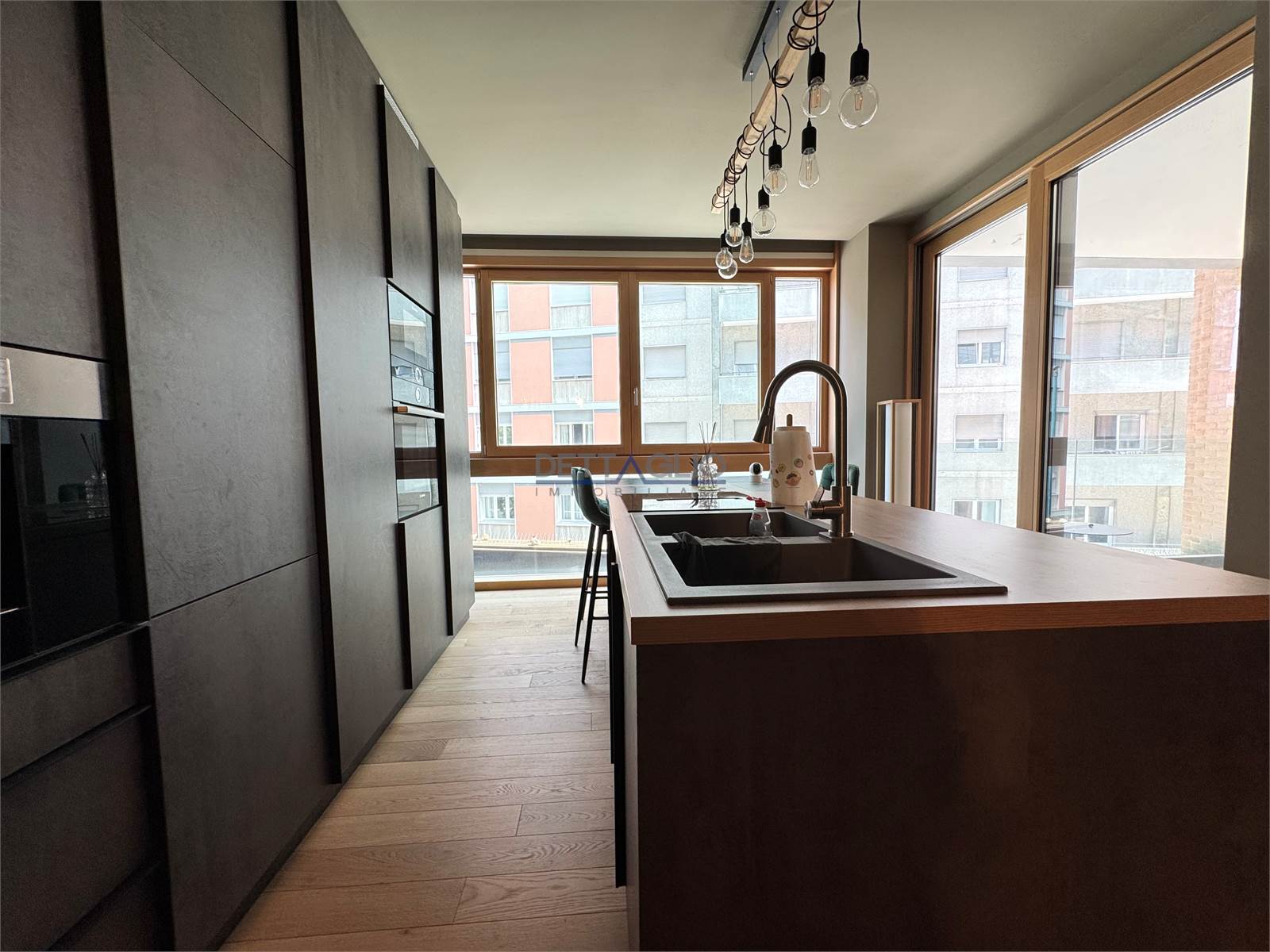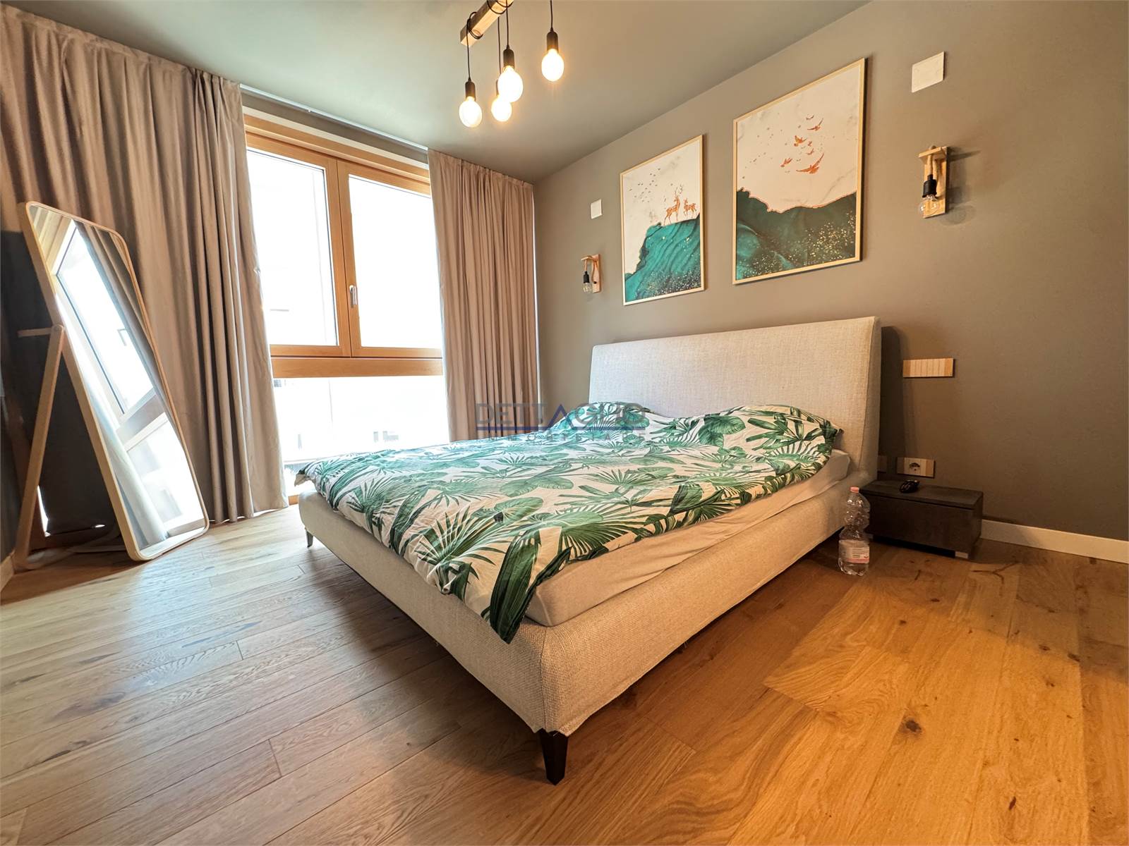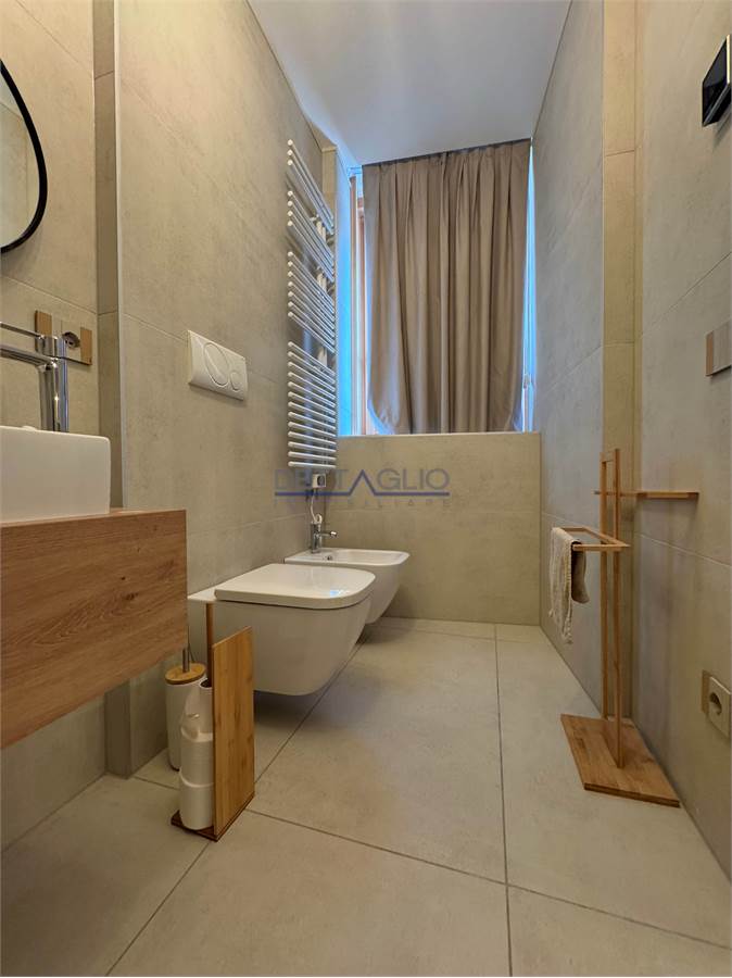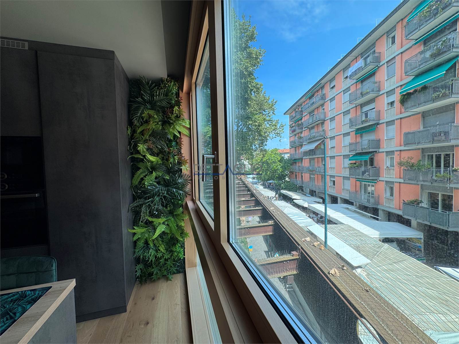 L'appartamento, che si contraddistingue per lo stile moderno ed elegante, è composto da un ingresso, un'ampia zona living con cucina a vista ed accesso al terrazzo, 2 camere matrimoniali e 2 bagni.