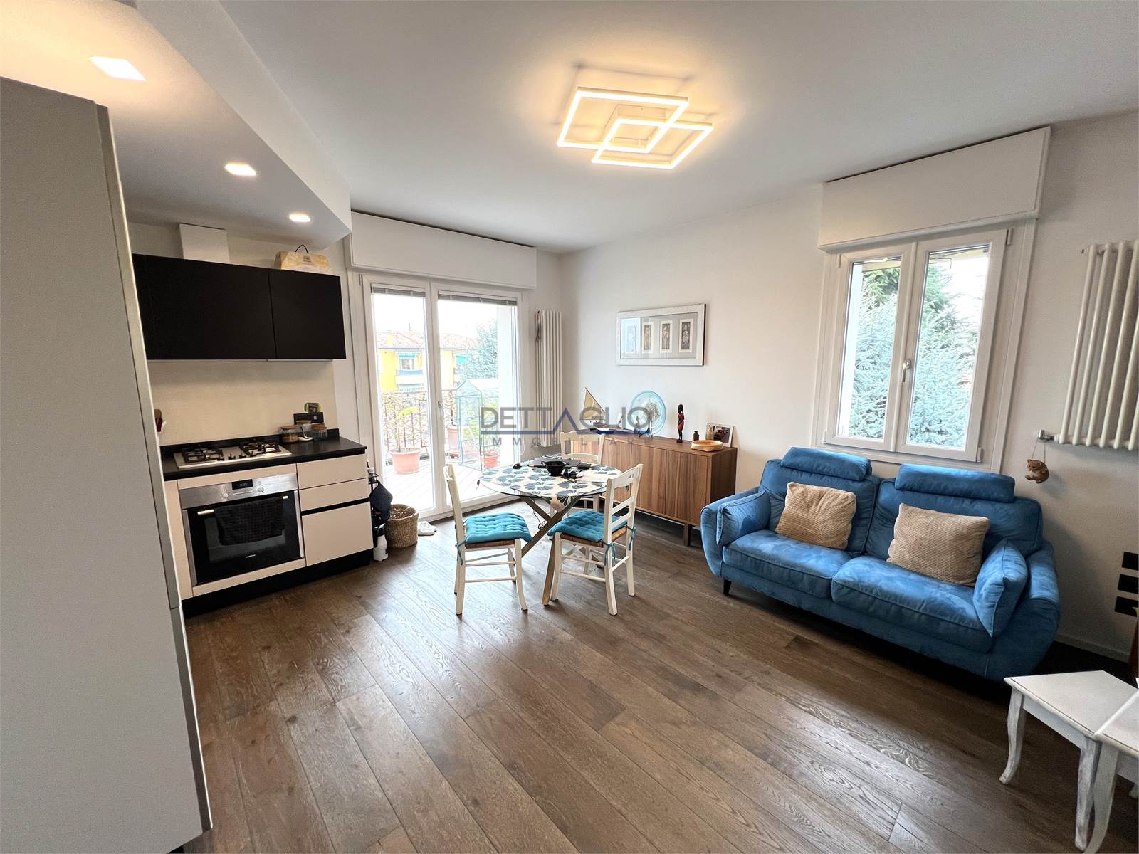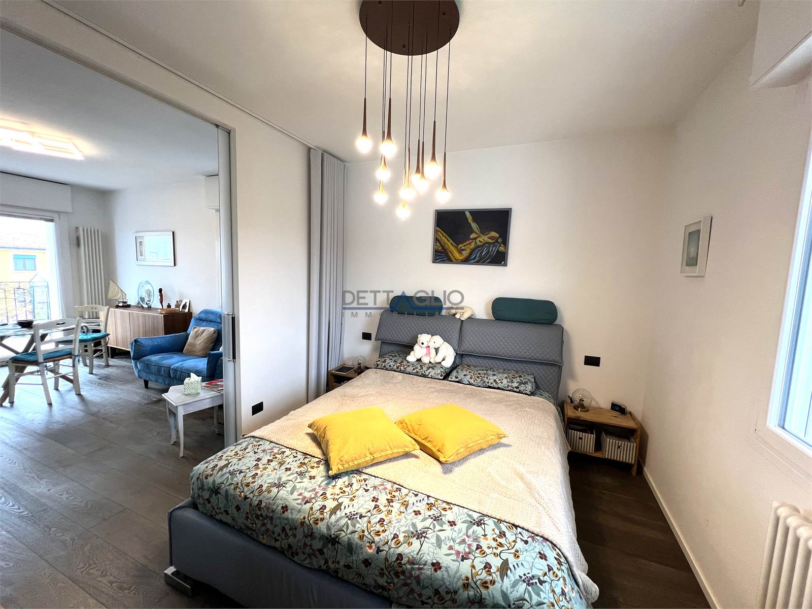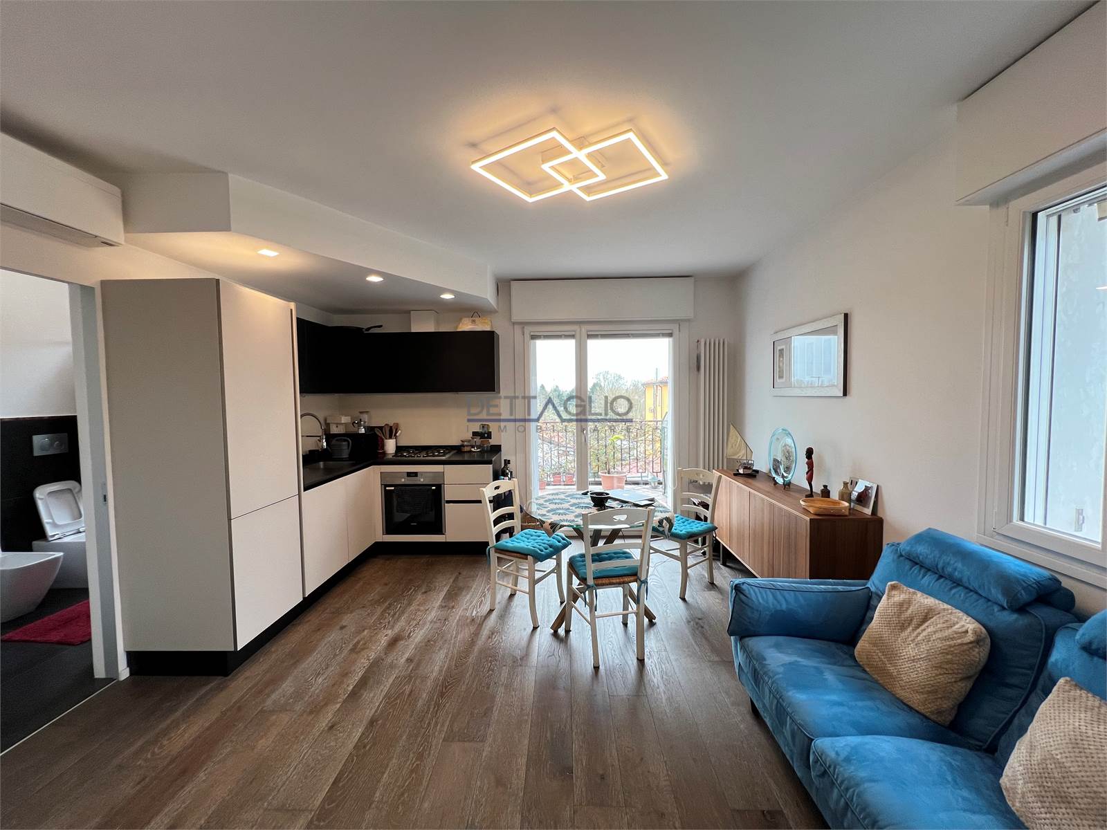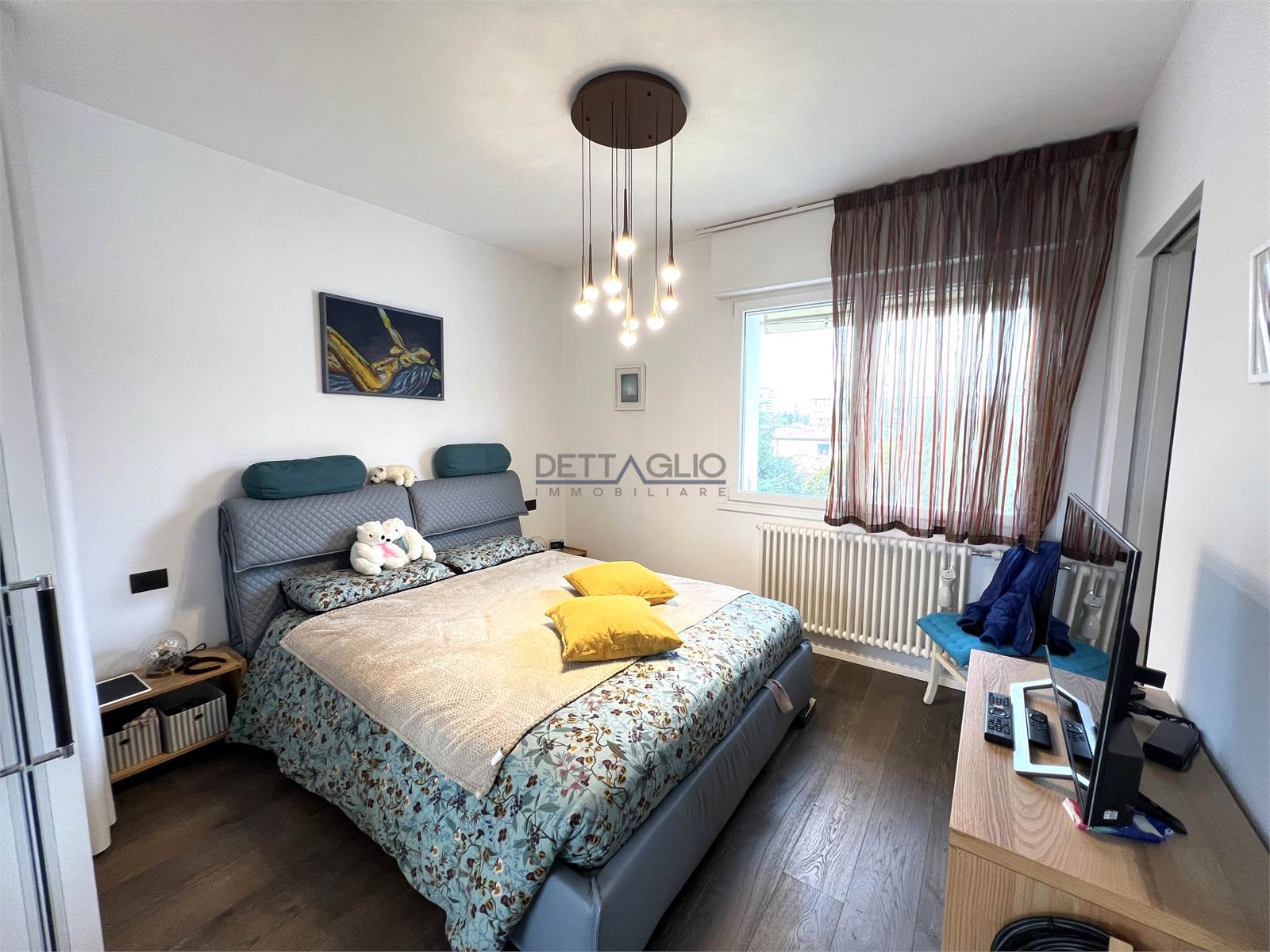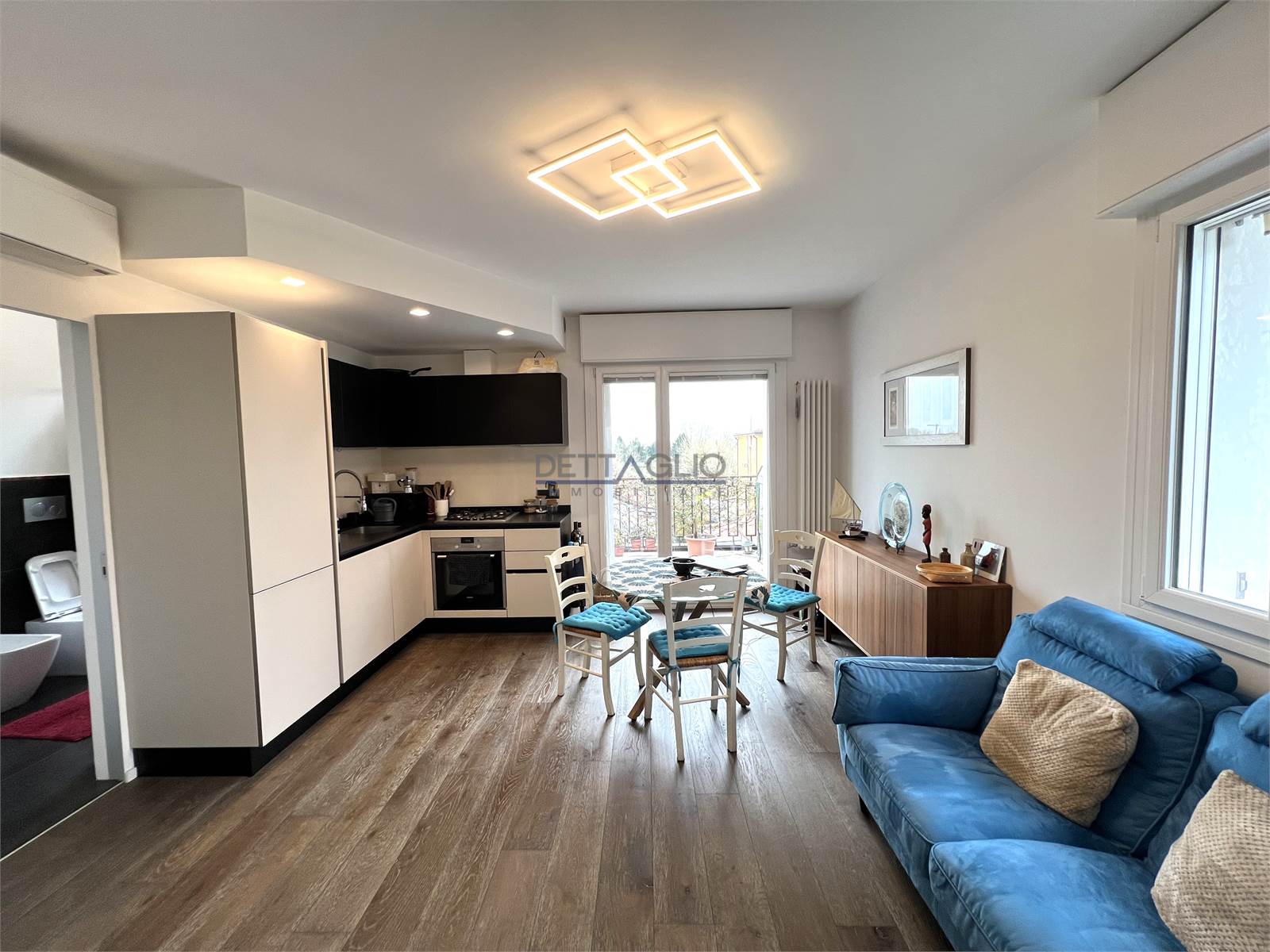 L'appartamento é composto da una luminosa zona giorno con soggiorno e angolo cottura, uno spazio accogliente e funzionale ideale per la vita quotidiana. La zona notte è composta da una comoda camera da letto dotata di pratica cabina armadio.