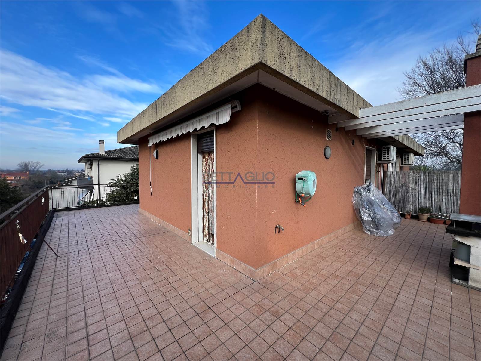 Proponiamo in vendita ampio appartamento disposto su due livelli con ampia terrazza abitabile. Il piano inferiore è composto da un ingresso, 3 camere da letto, 2 bagni finestrati ed un ripostiglio, salendo al piano superiore è presente un soggiorno con angolo cottura con accesso ad un'ampia terrazza abitabile di 66 mq. E' compreso anche un garage al piano terra.