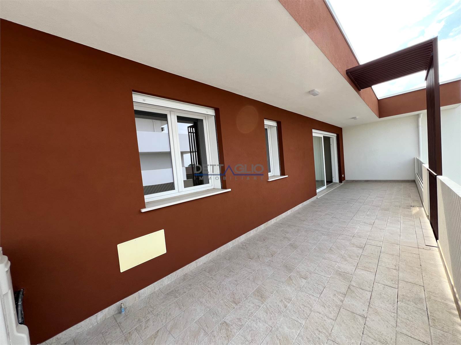 L'appartamento è composto da un ingresso che conduce ad un ampio soggiorno con angolo cottura con accesso ad un'ampia terrazza abitabile, due camere da letto matrimoniali e due bagni, a completare la distribuzione interna, un pratico ripostiglio.