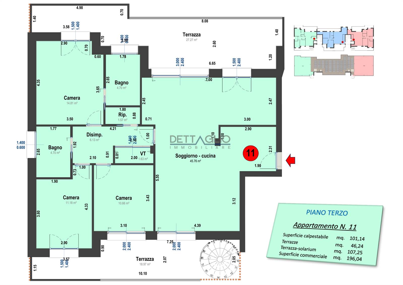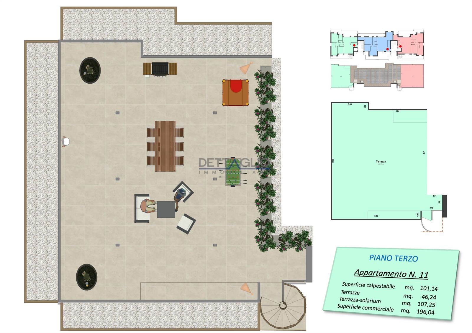 A completare questa proposta due ampie terrazze al piano giorno ed ampia terrazza solarium esclusiva al piano superiore.